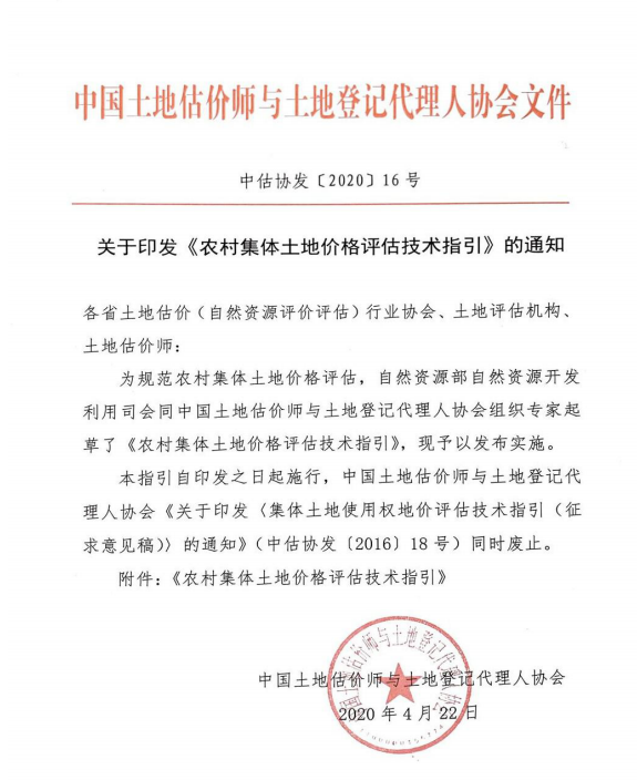 關(guān)于印發(fā)《農(nóng)村集體土地價格評估技術(shù)指引》的通知